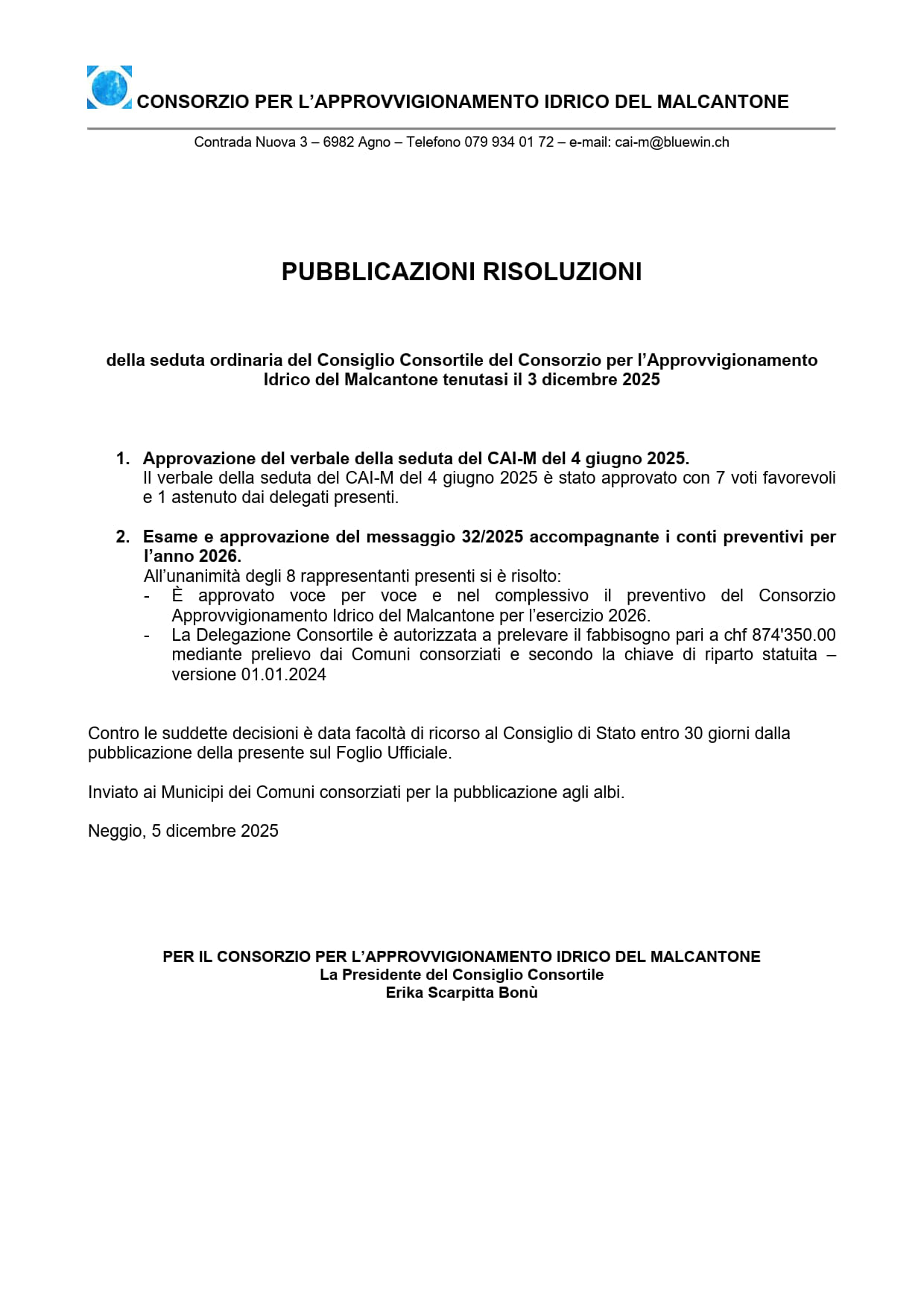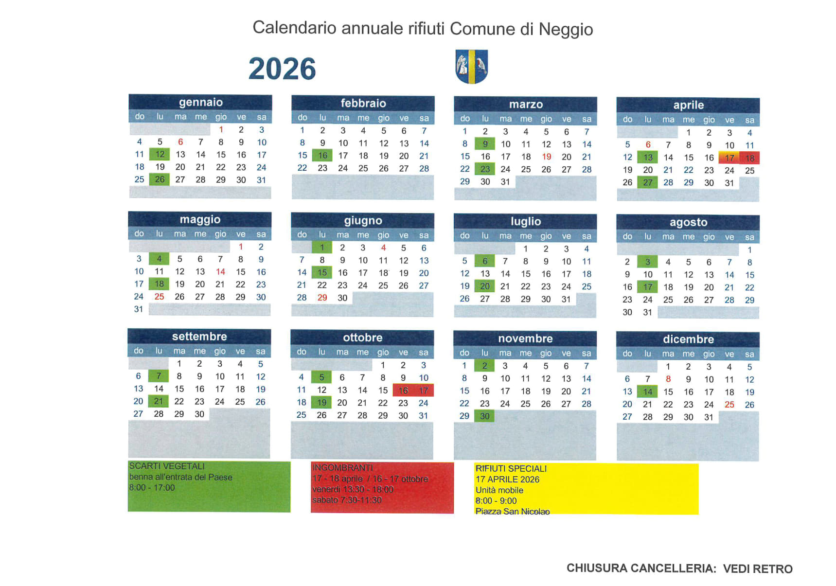 Avvisiamo la spettabile utenza che lo sportello della Cancelleria comunale resterà chiuso per il periodo festivo fino al 6 gennaio 2026.