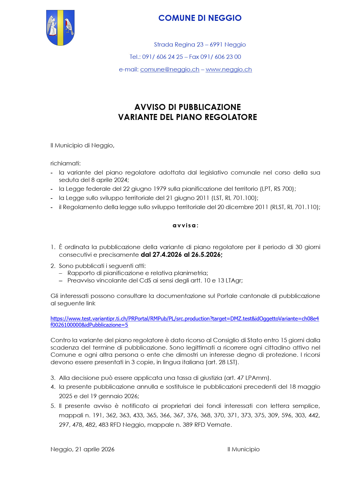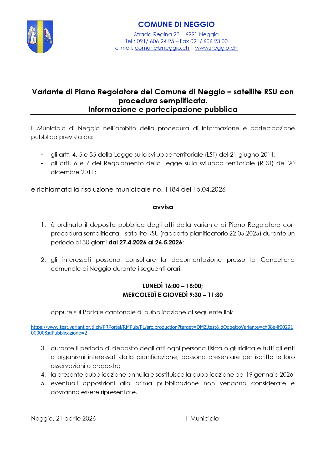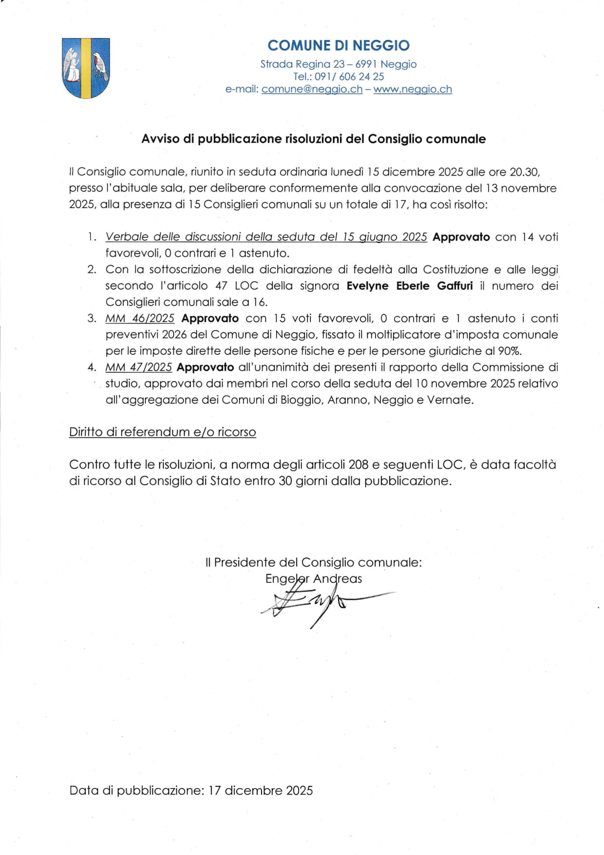Pubblicato il rapporto finale dell’aggregazione Bioggio, Aranno, Neggio e Vernate (BANV)